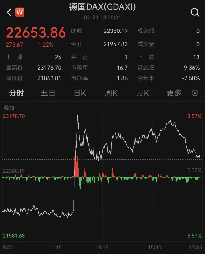德国、法国、意大利等欧洲主要股指也献艺“旱地拔葱”,从日内下落超2%的位置一跃转涨。