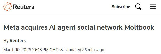 就在Information爆料的同期,3月10日,Meta官宣收购Moltbook。