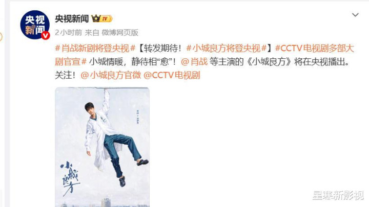 4月13日,央视新闻相接转发了多部新剧行将登陆央视的音书,肖战搭档姜妍主演的《小城良方》就在其中!