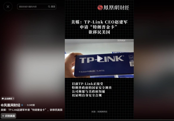 在赵建军欲带着全家外侨的音书曝光后,底本对TP-Link魄力恶劣的好意思国,竟也出现了180度的魄力大滚动,就好像底本刻意针对TP-Link的不是好意思国政府似的。