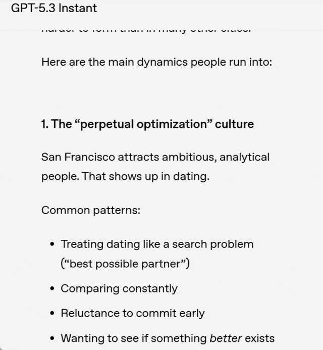 尽管GPT-5.3Instant在日常使用体验方面取得了本体性越过,但仍有校正空间:
