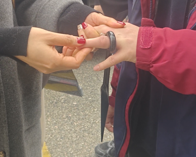 △男孩的无名指上套着一枚玄色的“箭头”。