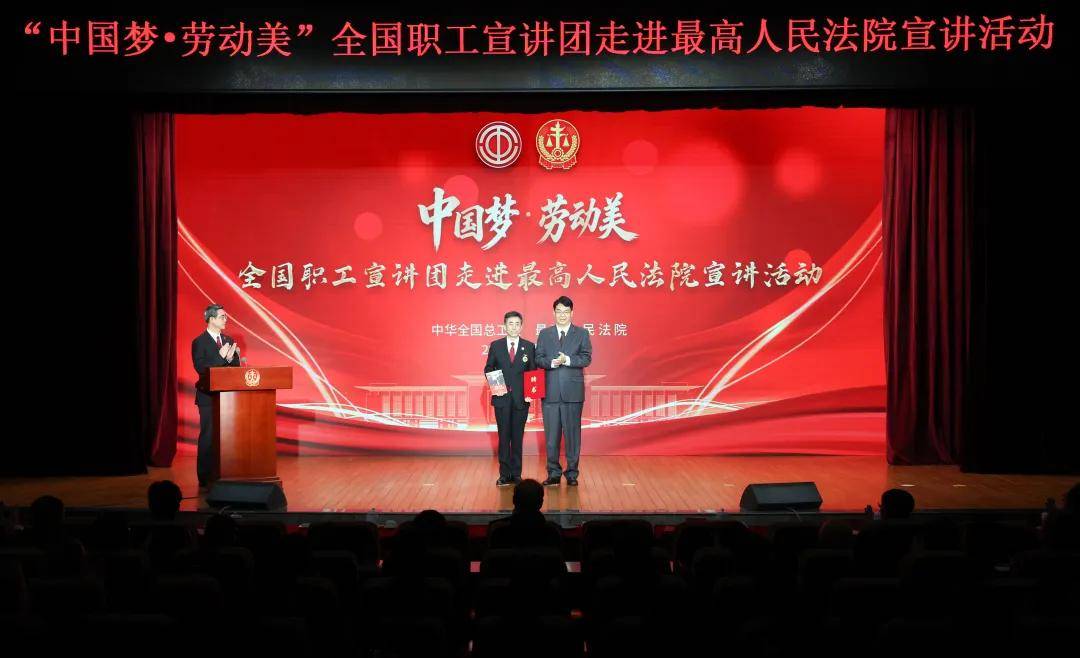 宣讲看成上,中华世界总工会副主席候选东说念主、文告处文告东说念主选、党构成员郑玄波为世界先进工作家、北京金融法院丁宇翔法官颁授“中国梦·工作好意思”世界员工宣讲团宣讲员聘书,并补助书本《习近平与一线员工一又友们》。