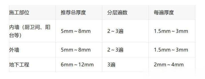 外墙:除分层涂抹外,大面施工时宜分条或分块错开施工,每块面积不宜大于12m²,条宽不宜大于1.5m,以斥逐减弱应力,减少开裂风险。外墙施工还需止境阻挠天气条款,幸免暴晒和雨淋。