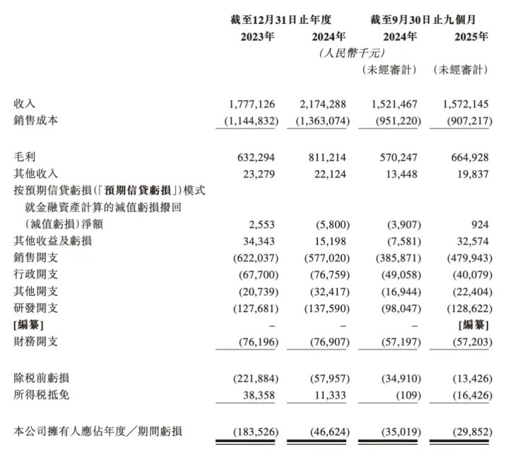 招股书自大,2023年至2025年前三季度,德兰明海营业收入辩认为17.77亿元、21.74亿元及15.72亿元;同期净亏空辩认为1.84亿元、4662.4万元和2985.2万元。